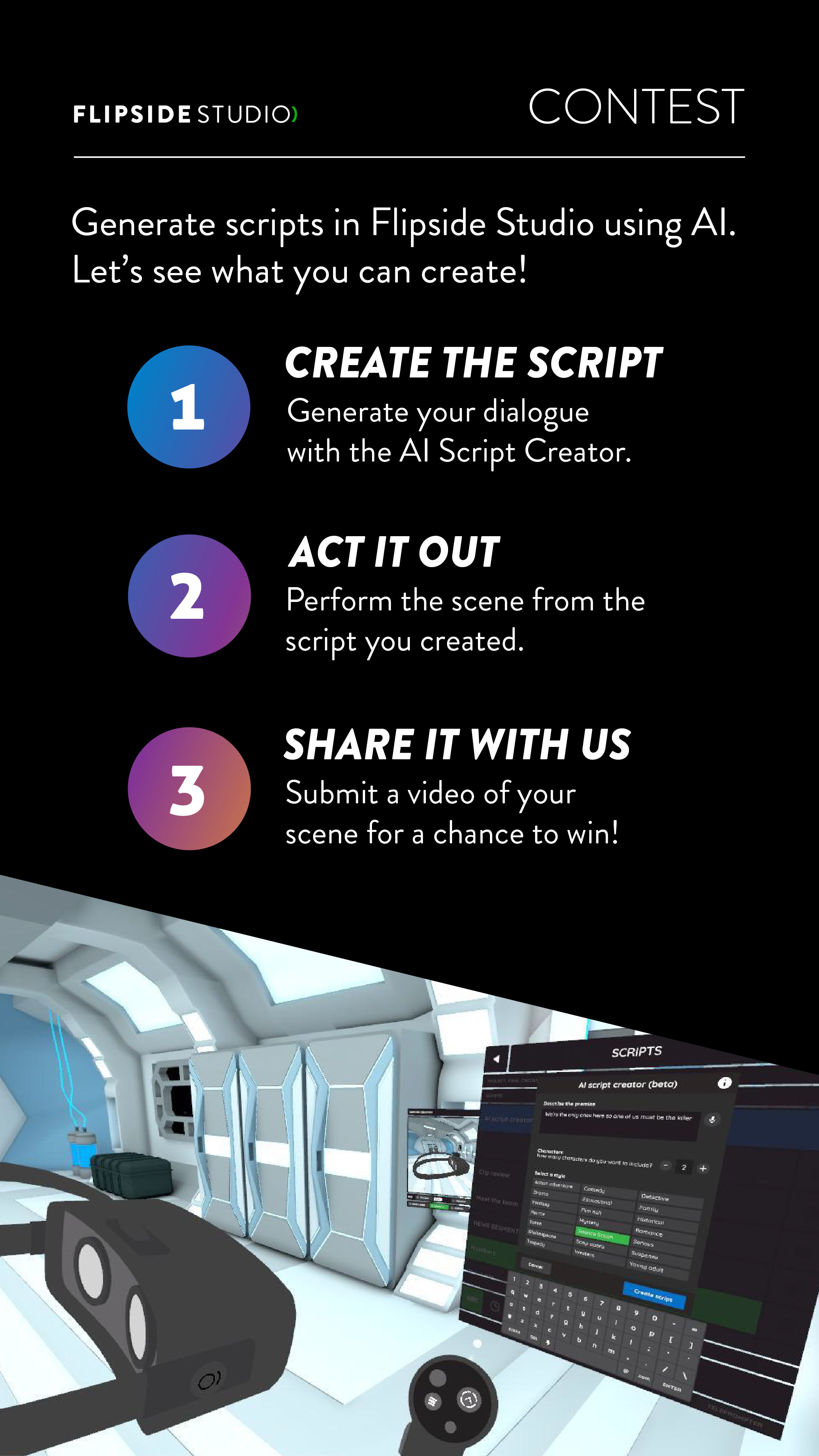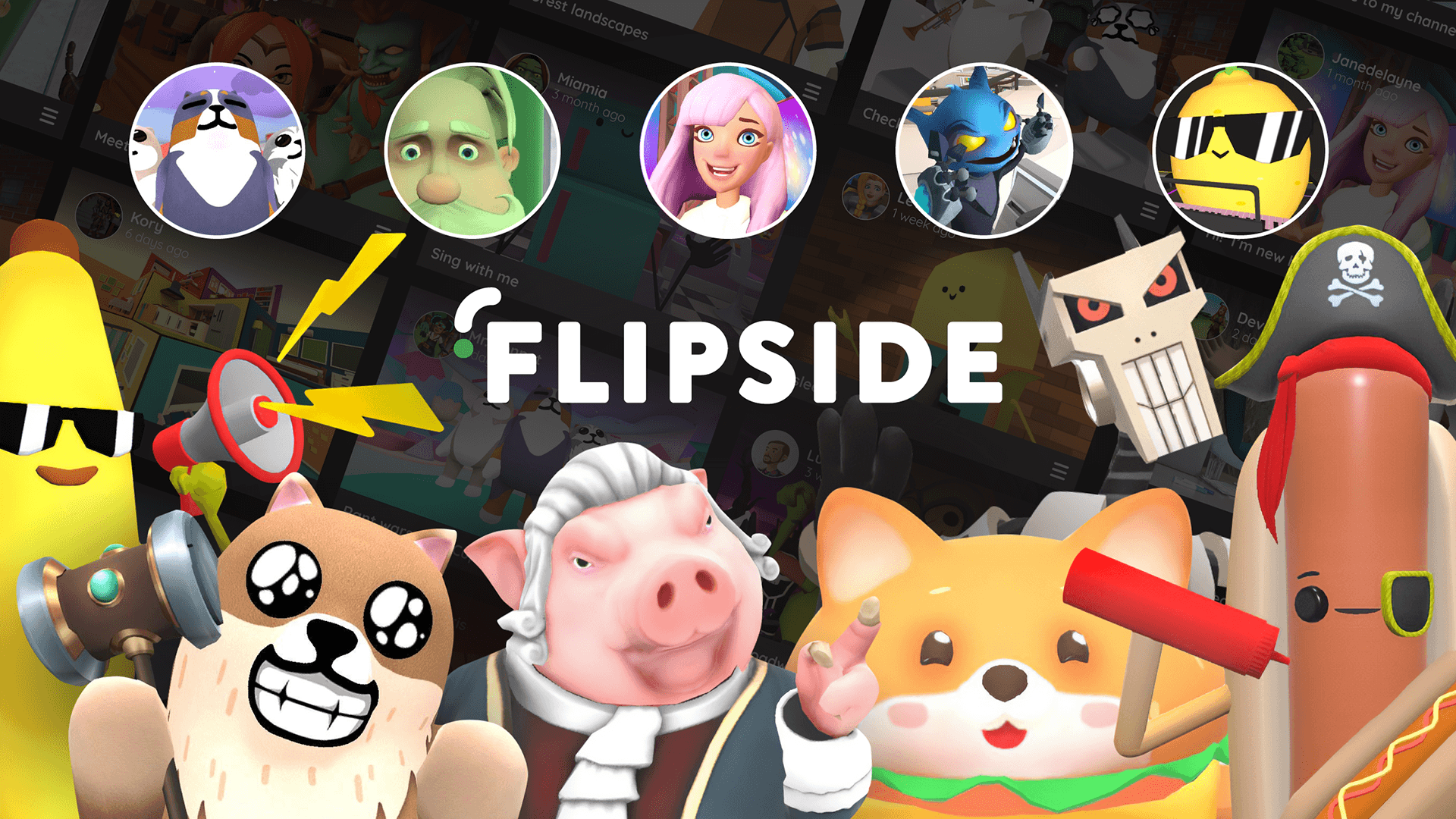 Various promotional materials created for Flipside XR and Flipside real-time animation app for VR headsets.